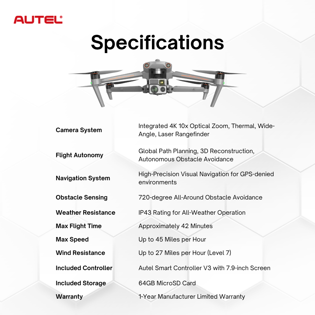| Included Controller | Autel Smart Controller V3 (7.9-inch Display) |
