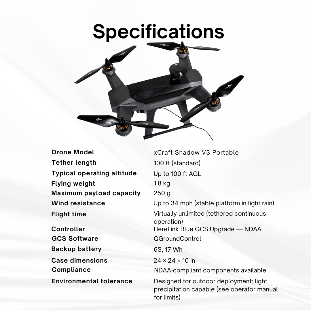 xCraft Shadow V3 — NDAA‑Compliant Tethered Persistent Surveillance UAS