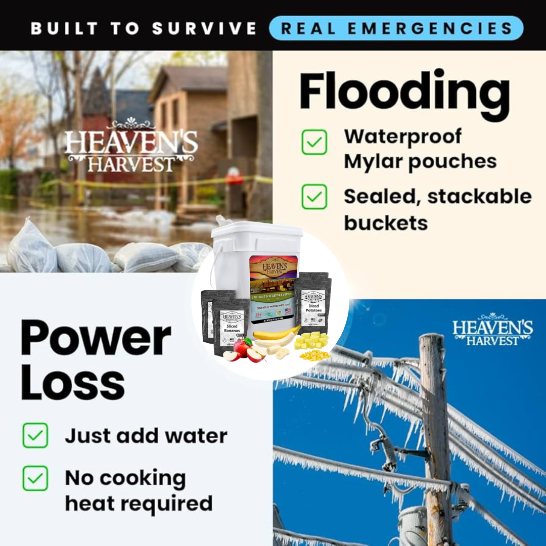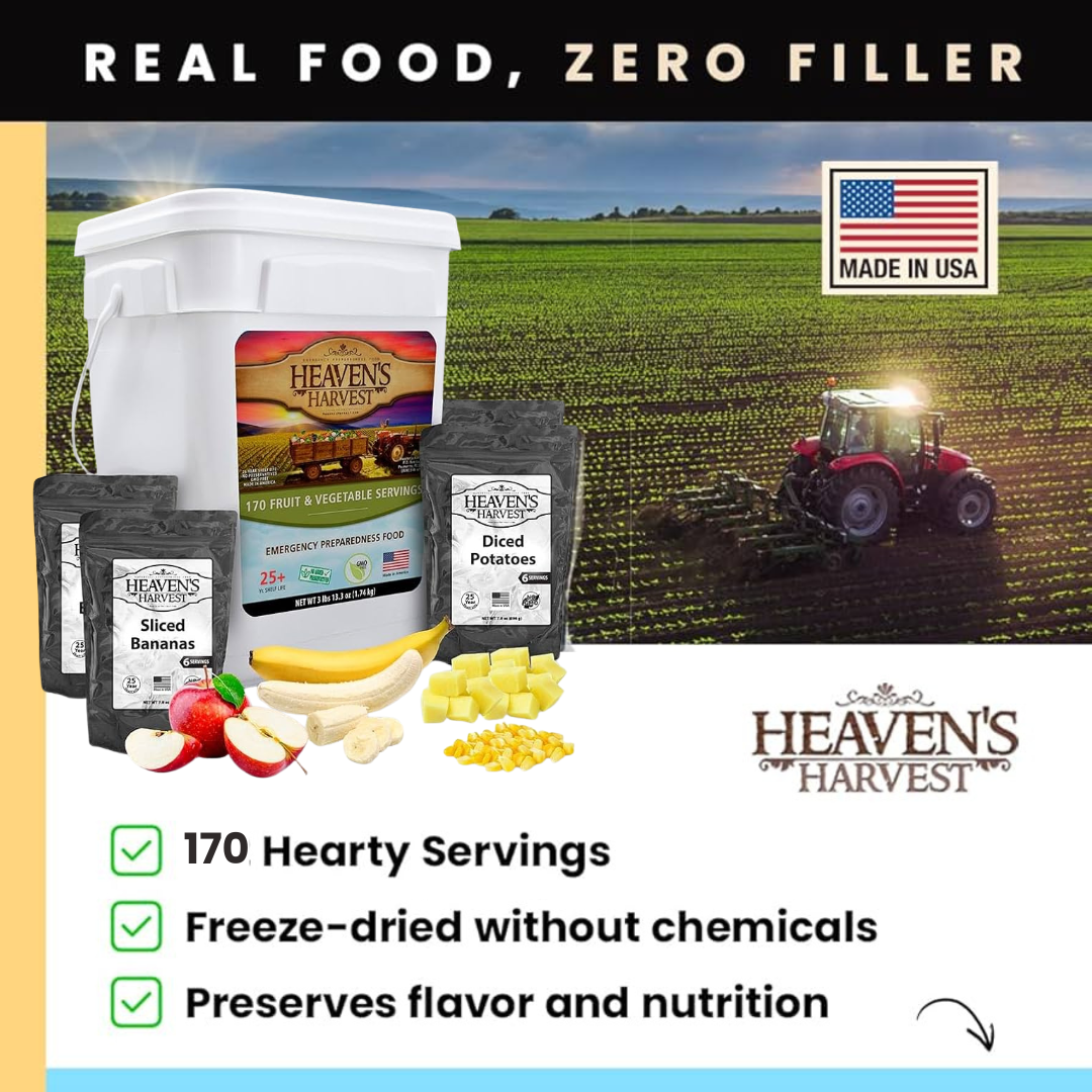 Be ready for anything with the Heaven’s Harvest 12-Pack Fruit & Vegetable Kit — now featuring 3 fruit and 2 vegetable varieties for a total of 2,040 servings of delicious, nutrient-rich goodness!