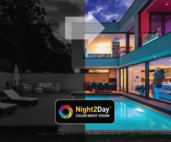 Night2Day™ color vision — Advanced sensor technology delivers full-color images in low light, not just infrared black and white.