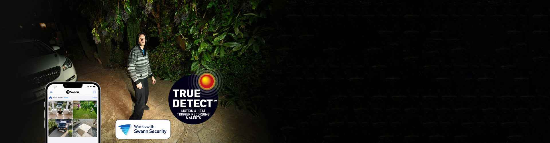 True Detect heat and motion sensing — Intelligent detection reduces false alerts by distinguishing people and vehicles from environmental triggers.