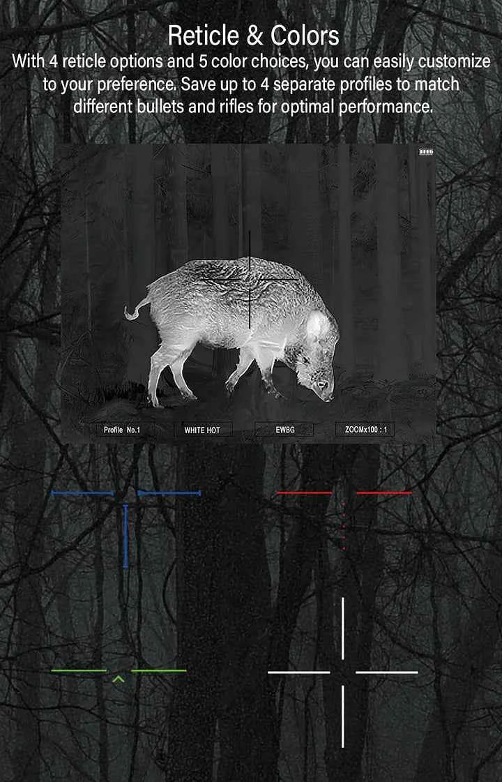 | Color Modes | White Hot, Black Hot, Iron, Rainbow, Sepia, Fire |