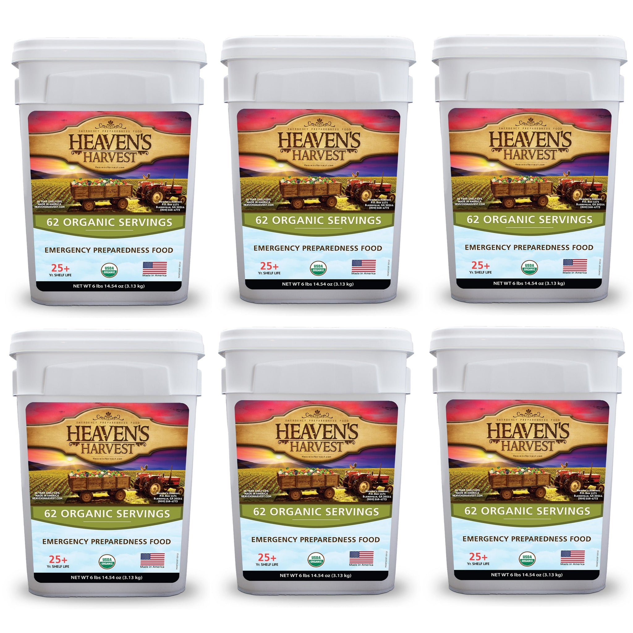 Organic Meal Bucket - 6 Pack - Emergency Food Survival Kit